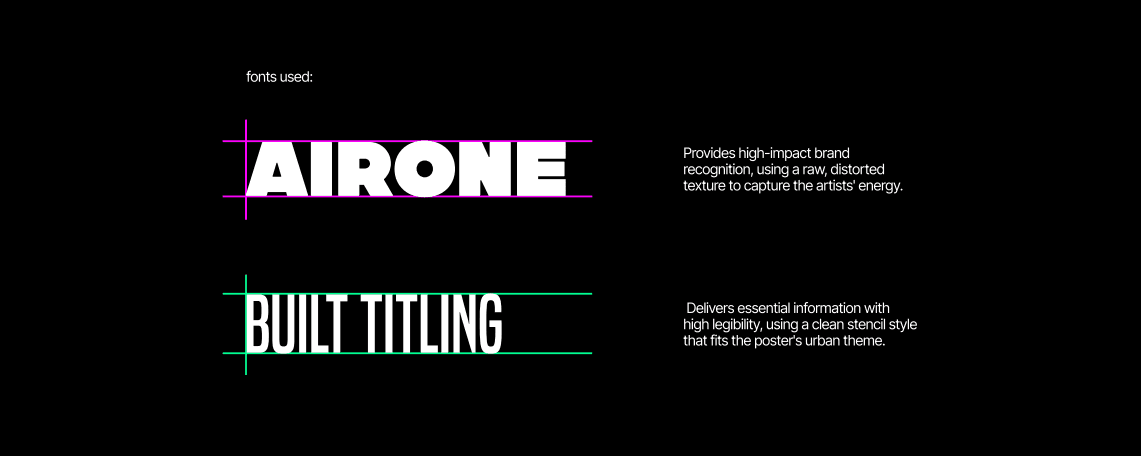A strict central alignment builds a bold, symmetrical layout that demands confrontation. The viewer’s focus is pulled straight into the core—first the headline, then the artists, and finally the supporting details.